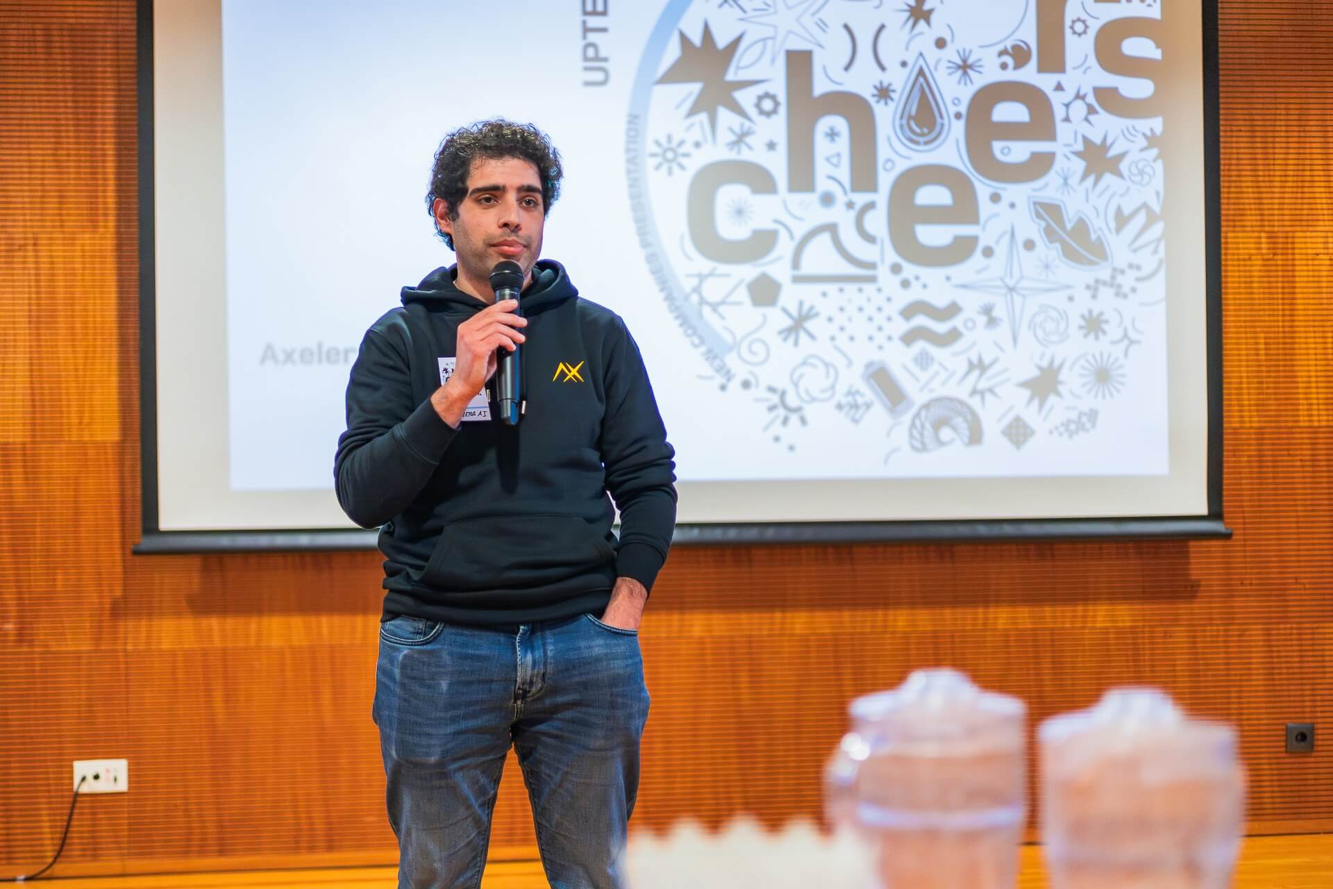 Manuel Oliveira, Senior Digital Designer at Axelera AI, presenting the company at a UPTEC event