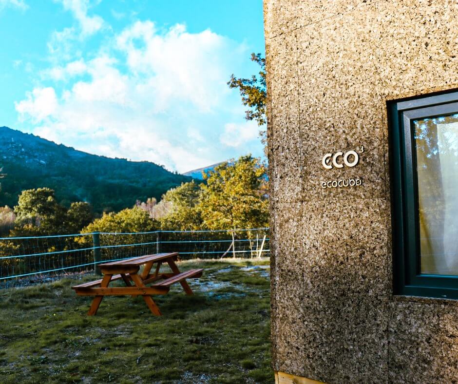 Criada em Portugal, a Ecocubo destaca os produtos endógenos tanto nos materiais de construção – madeira e cortiça –, como no mobiliário interior – a cama, colchão e têxteis que são feitos em Portugal. “Queremos ligar as diferentes regiões, cubo a cubo, atuando como referência, como um marco no território, de forma a democratizar a vivência na natureza, sem que isso implique impacto negativo no ambiente.”, destaca António Fernandes, criador da Ecocubo.