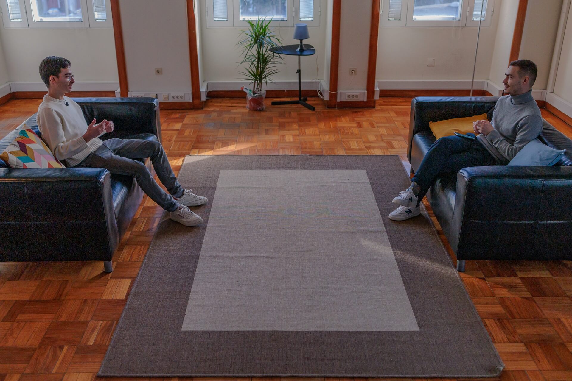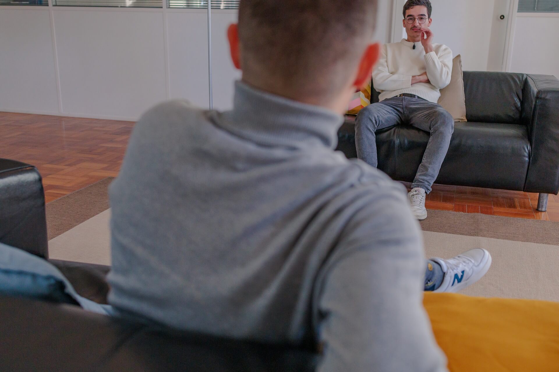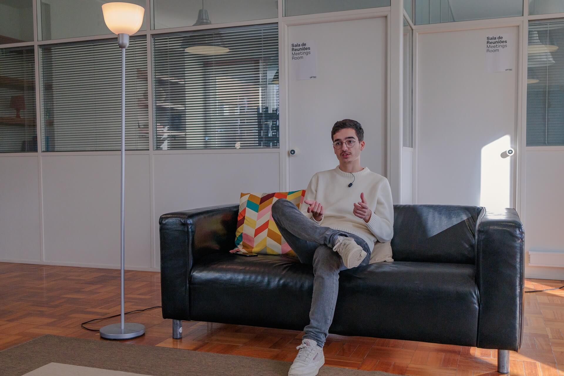 Entre 2020 e 2021 e antes de recebermos o investimento, arranjámos um escritório que era de um amigo nosso — que era uma casa de elevadores — num prédio aqui da baixa. Era no último andar de um prédio, ali em frente ao Jornal de Notícias e esse foi o nosso escritório onde trabalhámos mais de um ano. Era mesmo fixe, porque era o nosso espaço, púnhamos música e tínhamos uma grande varanda para apanhar sol e com grande vista! Foi o primeiro espaço da Intuitivo!