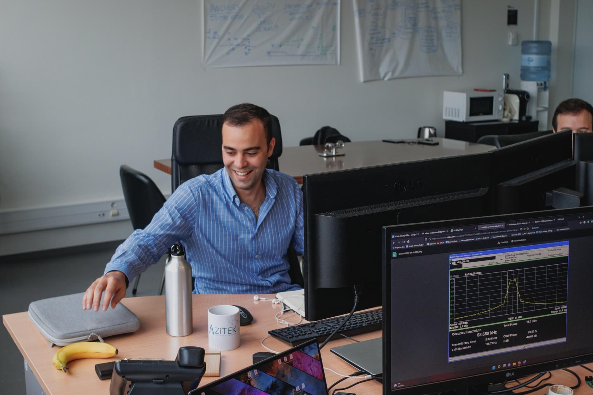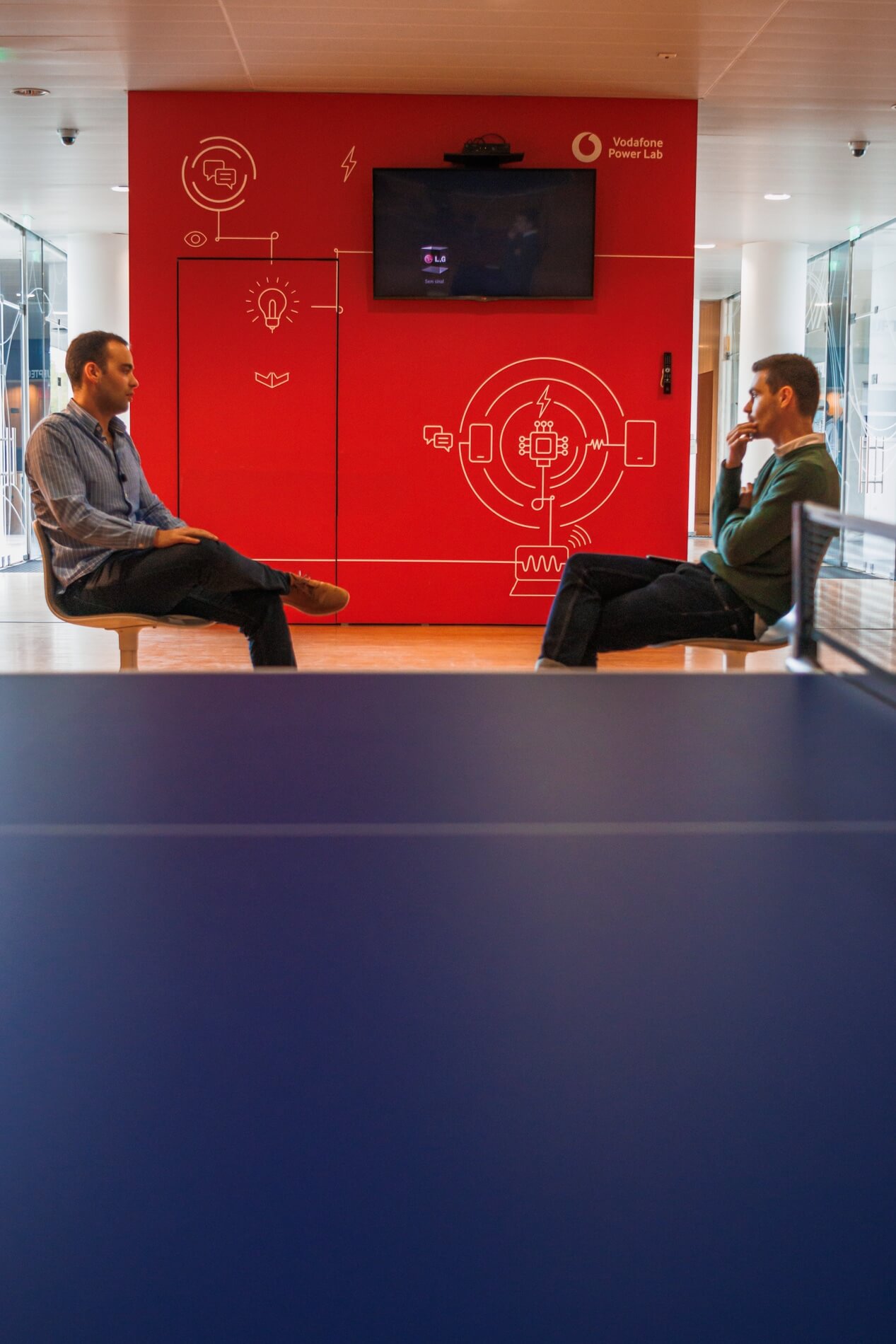 Vou começar mesmo pelo início (risos). Nós — eu e o Rui, o outro cofundador — estudámos Engenharia Eletrotécnica na Faculdade de Engenharia da U. Porto e depois do curso eu vim trabalhar para uma empresa da UPTEC — a Tekever — e ele continuou para o doutoramento. Na altura, eu estava a desenvolver telecomunicações para satélites — foi muito fixe, eu gostei imenso e aprendi mesmo muito. Sinceramente, eu nunca fui daquelas pessoas que têm o sonho de criar uma empresa, mas comecei a pensar que podia fazer mais coisas. No fundo, apercebi-me que tinha competências para resolver alguns problemas que estava a encontrar. Não podia ser mais ingénuo (risos). Isto é mesmo aquela coisa de engenheiro de achar que a minha ideia é incrível e que vai vender imenso (risos).