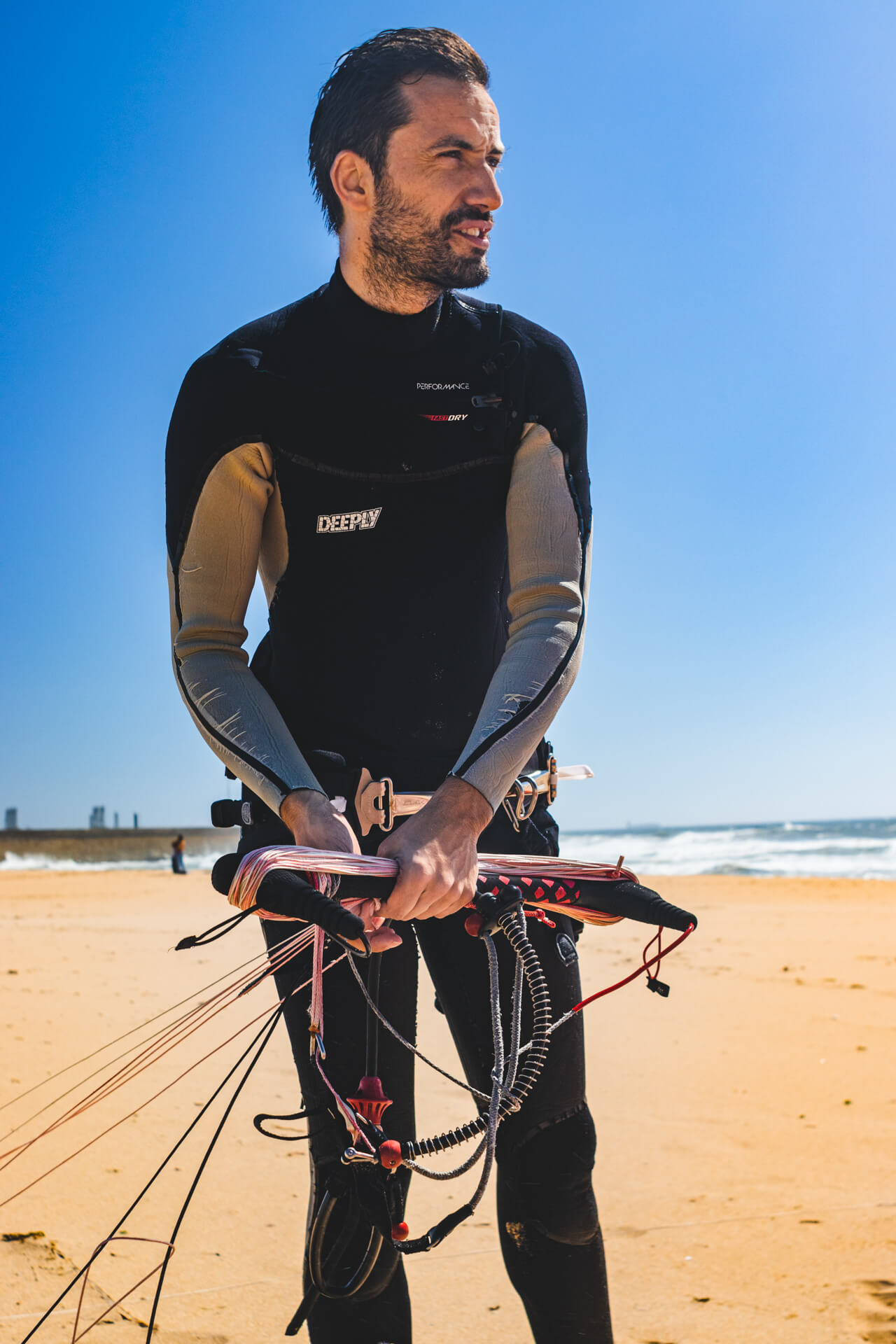 Ora bem, surge em 2011 e, basicamente, tinha um amigo, o Cristóvão — que curiosamente é o meu sócio na empresa (risos) —, com quem fazia canyoning e era muito divertido, mas era uma atividade que demorava o dia todo, porque tínhamos de ir para montanhas distantes do Porto. Nós morávamos perto da praia e ele convenceu-me a tirar o curso de kitesurf. Eu sou um pouco anti-cursos, gosto de aprender as coisas por mim próprio e no Youtube, mas ele lá me convenceu (risos). Bem, lá fomos tirar o curso e eu achei que aquilo não valeu assim tanto a pena (risos).