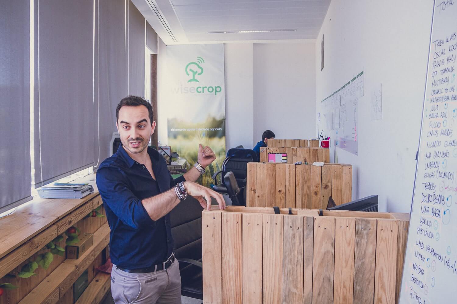 Nós começamos na faculdade. Nós – cofundadores da Wisecrop (Sandro Vale, Tiago Sá, Miguel Rodas e Flávio Ferreira) – conhecemo-nos na Faculdade de Engenharia da U. Porto e começamos a trabalhar todos juntos no último ano do curso, em que tivemos um projeto em tecnologias de comunicações sem fios. Nós temos uma característica em comum, que é uma vontade de criar algo novo – no fundo, o típico ADN de um engenheiro (risos). Na altura, por ignorância, pensámos que ia ser fácil, mas quando começámos a trabalhar é que sentimos as dores. A decisão estava tomada, por isso era seguir para a frente e levar até ao fim. Eu trabalhava em investigação na FEUP, o Tiago estava a dar aulas, o Miguel Rodas e Flávio estavam ainda a terminar o curso e decidimos que tínhamos de largar o nosso trabalho para começar a dedicar tempo a este projeto. Se queres conquistar um investidor tens que tomar essa decisão. Durante este tempo, o que nos ajudou muito foram os concursos a que fomos concorrendo, onde fomos validando a nossa ideia e também tendo algum reconhecimento. Participámos no The Next Big Idea da SIC e vencemos alguns prémios monetários, que começámos a usar para investir no produto. Inicialmente nós tínhamos a tecnologia e pensámos onde é que a poderíamos aplicar e, pelos conhecimentos e raízes que cada um tem, assim como pelo posicionamento de Portugal, decidimos apostar na agricultura. Sentimos aqui uma janela de oportunidade excelente, até pela falta de tecnologia nesta área. Nesta altura, o nosso foco era só dispositivos. Basicamente, era ter acesso a dados remotamente. O primeiro objetivo foi aplicar isto a modelos de pragas e doenças para a vinha, mas com o contacto que tivemos com os produtores, percebemos uns quantos problemas. E nós, com o nosso pensamento de engenheiro pensamos: “Ei, isto é fácil de resolver!”. Começamos a resolver estes problemas e, quando demos por ela, temos este monstro que temos agora (risos).
