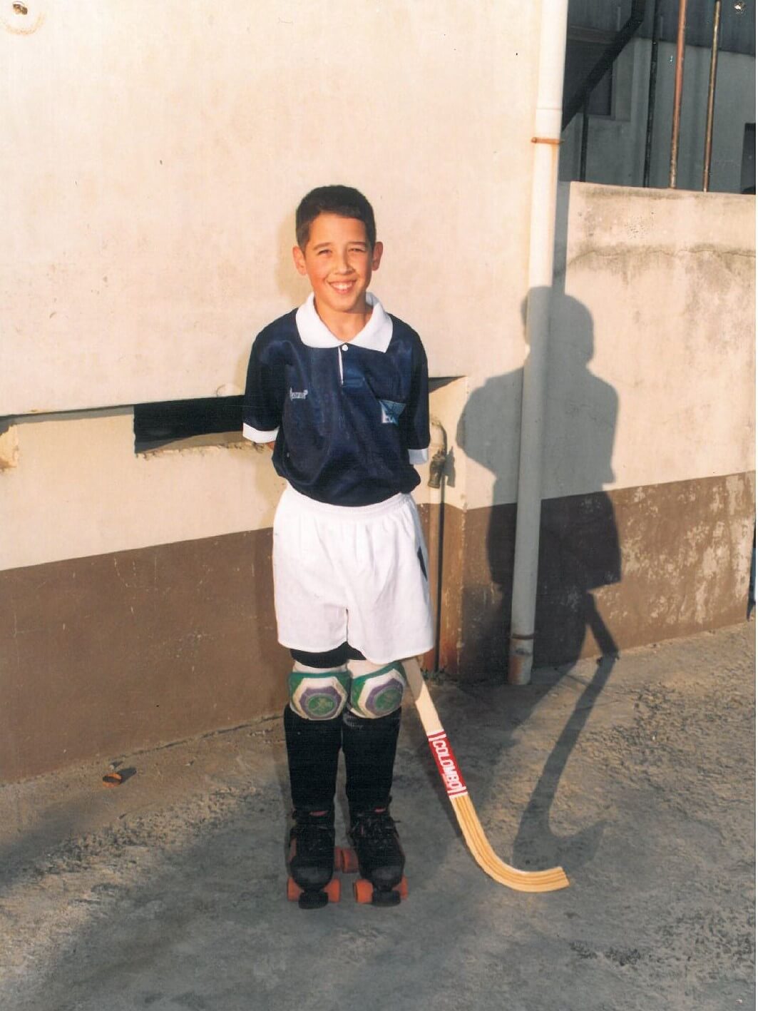 Surge muito cedo, porque toda a minha família tem tradição no hóquei. O meu pai e os meus tios são de Santa Cruz do Bispo. O meu pai está a 50 metros do pavilhão, o meu tio foi uma das pessoas que ajudou a trazer o hóquei para o clube… Por isso, foi natural que com 4 ou 5 anos me pusessem a andar de patins e, de repente, estava a jogar hóquei. A minha família tem essa tradição: conforme a malta se junta para ver os jogos do Europeu em futebol, na minha família juntamo-nos para ver os Mundiais de hóqueis em patins. Eu lembro-me de ser pequeno e estarmos todos na sala da minha avó a ver o Mundial de hóquei. Os meus tios e tias jogaram e tenho também uma série de primos a jogar.