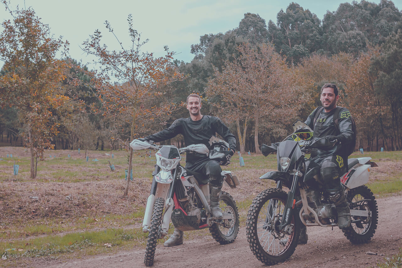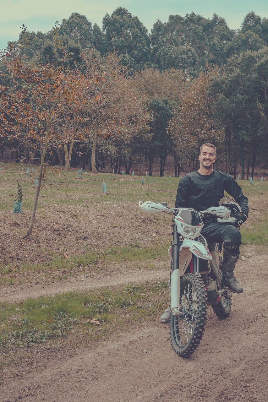 Bem, aquilo não é exatamente motocross. É mais enduro. O Gonçalo apresentou-me uma pista aqui perto e treinamos lá para ganhar alguma técnica. Depois vou com uns amigos num fim de semana para o monte e fazemos enduro. Aquilo é super engraçado. Estás na montanha e depois aparece-te um tronco e tens de o retirar, tens de perceber como é que consegues ultrapassar aquele obstáculo… É um desafio grande!