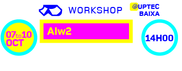 AIw2 is not your average workshop series. It's a kick-ass event designed to demystify artificial intelligence and make it accessible to all you cool cats in the arts, cultural, and creative industries. Join us from October 7 to 10 as we dive into creating your own AI systems, ethical co-creation techniques, and leveraging these technologies to secure that sweet, sweet funding. #1 Introduction to Artificial Intelligence - October 7thWelcome to the AI 101 Workshop! Get ready to dive into the world of artificial intelligence. This session'll unravel the mystery behind AI models, their functionality, and their wide-ranging applications. We'll also explore the intersection of AI with sustainability, shedding light on its ecological impact and potential for shaping a greener future.#2 Reactive AI Systems - October 7th and 8thGet ready for a mind-blowing two-day workshop on Reactive AI Systems with Gonçalo Guiomar, a leading member of the Lunar Ring collective and a researcher at the Champalimaud Foundation. Learn to create reactive artificial intelligence models that generate images in real time from visuals or sounds. This workshop will open your eyes to the inner workings of AI models and demystify their training and information generation processes.#3 Using AI without being used - October 8thGet ready to dive into the world of cutting-edge models! In this workshop, you'll uncover the available models, their training methods, and how to empower creative minds to engage with them. We'll also cover strategies to ensure that individuals are not unwittingly included in databases used for model training. Plus, we'll explore the functionality of popular models and how they can safeguard against the misuse of shared data.#4 Co-Creation Methodologies with Artificial Intelligence - October 10thJoin Clara Vieira, designer, founder of the Claan studio, the Portuguese D4CR chapter, and a guest lecturer at the Faculty of Fine Arts of UPorto, for an exciting session on Co-Creation Methodologies with Artificial Intelligence. Discover co-creation techniques with AI that empower users while upholding ethical standards.
